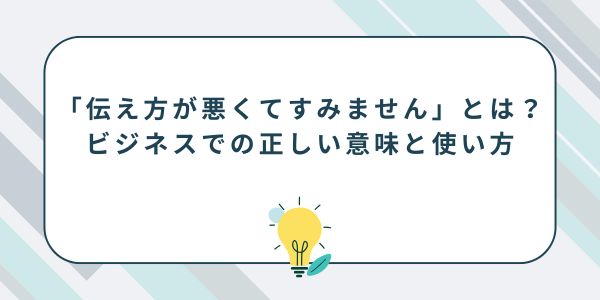 この記事では、ビジネスシーンで「伝え方が悪くてすみません」を丁寧かつ好印象に伝える方法を解説します。