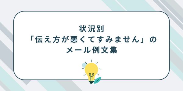 以上が、「伝え方が悪くてすみません」の基本的な意味と使い方です。次は具体的に、状況別のメール例文集を見ていきましょう。