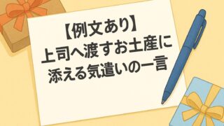 ビジネスとマナー 【例文あり】上司へ渡すお土産に添える気遣いの一言 上司にお土産を渡すときの一言メッセージ例とマナーを紹介。シーン別文例やNG表現も解説し、感謝と気遣いが伝わる言葉の選び方が分かります。 ビジネスとマナー