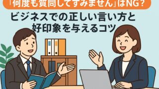 ビジネスとマナー 『何度も質問してすみません』はNG?ビジネスでの正しい言い方と好印象を与えるコツ 「何度も質問してすみません」は丁寧なようで印象を下げるNGフレーズ。本記事では、ビジネスで信頼される言い換え方・質問のコツ・メール文例を分かりやすく解説。今日から「謝らない聞き方」で、上司や取引先から“できる人”と思われる方法を紹介します。 ビジネスとマナー